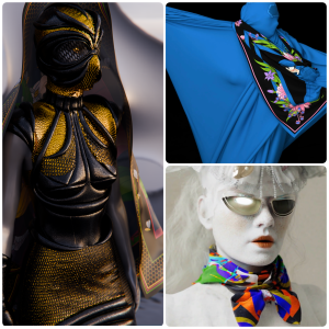The project brought together 3D designers from Europe, Asia, and the Middle East, each creating a digital fashion look inspired by a scarf from the collection. The result is a series of striking virtual runway pieces that highlight their distinct artistic visions, refined technical skills, and shared passion for reimagining fashion in the digital age. Participating designers include Sasha Vix, DesignNina, Ha Jinju, Shahrzad Forouzanfar, Marium Mujahid, MORWA, Shahrzad & Saba, Marie von Voxel, Yuliia Miekh, and Julia Mozzart.